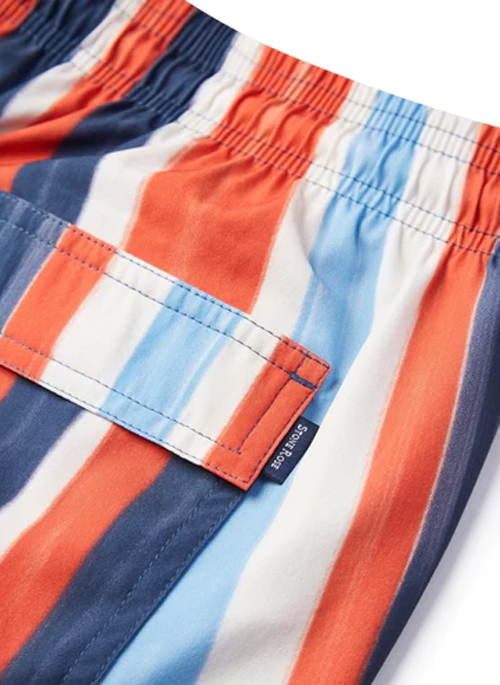As usual, our Blue Stripped Resort Swimshorts are made with our signature stretchy, quick-drying synthetic fabric and printed with fade resistant dyes to withstand the sunniest of days. These styles have a drawcord elastic waistband and a 7" inseam so they hit around the mid thigh. Just like the classic sold swimshorts this season, we finished our patterned swimshorts with 3 pockets that have embroidered holes to help the water drain quickly.