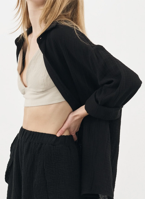 The Sundown Top Oatmeal Bralette has an earthy hues and features double layered cotton, adjustable tie-up shoulders, and an elastic back for a versatile fit. The perfect bralette to wear layered underneath our open oversized shirts or maxi skirts. Ready to be worn from day to evening.