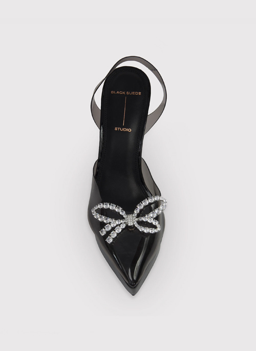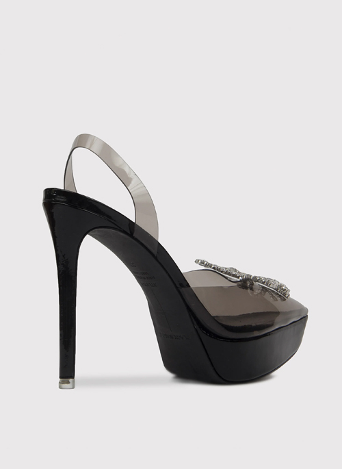 Bring on the class, bring on the party, bring on the SYDNEY. This platform heel features PVC and brings on the spotlight with a a shiny crystal bow that will make you stand out like no other.