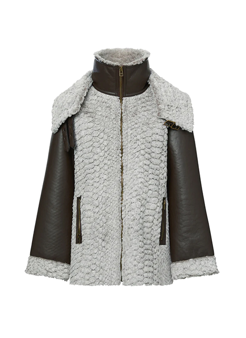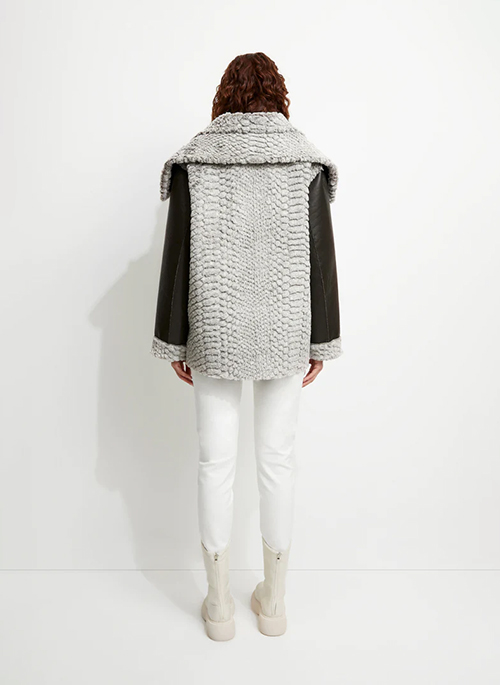 - Bonded vegan leather and faux shearling fabrication