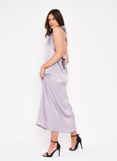 With A braided and adjustable back detail. A dress made in soft silky satin fabric and perfect for any occasion.