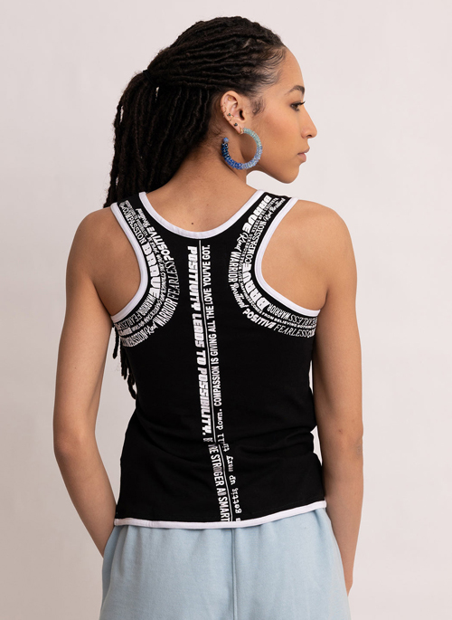 Our stylish women's racerback tank top is the perfect thing to wear for some extra motivation. The phrases "positivity leads to possibility" are printed down the middle, with additional sayings in smaller text running along the straps. Whether you're wearing it to the gym or on a casual outing, our women's tank top proves a few words can go a long way!