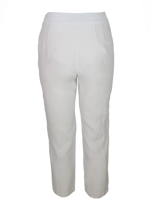 Note the expertly constructed silhouette of these pants. Cut from 100% linen fabric, they have a ribbed back waist and tapered legs that will complement everything from chunky sandals to mules.