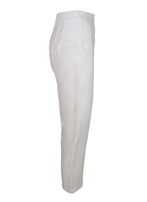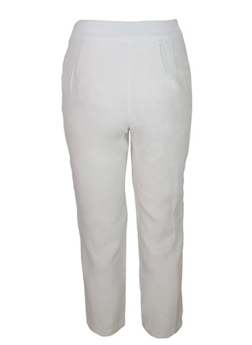 Note the expertly constructed silhouette of these pants. Cut from 100% linen fabric, they have a ribbed back waist and tapered legs that will complement everything from chunky sandals to mules.