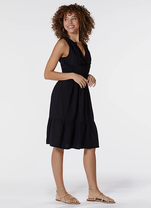 Elevate your wardrobe with unique and chic new Beach Gauze dress! Featuring a plunge split neckline with tassels, smocked flattering waist, and a tiered ruffle hem. Dress it up or down, this dress was made to be worn from the beach to the bar.