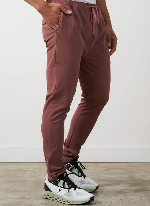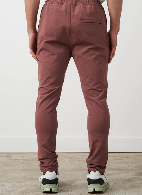 The TEK collection offers a range of technical clothing for active urban life. Designed with high quality materials: breathable, warm, anti-odor, super stretch and quick-drying. For a stylish and clean look no matter what your day looks like. The TEK Trouser features a simple tapered skinny cut with an elastic waistband and bronzed eyelet drawstring detail. Two welt pockets at sides, with a hidden zipper safe pocket on right side, and a single welt pocket with zip closure at rear. Tonal stitching through. Fitted cut, size up for looser fit.