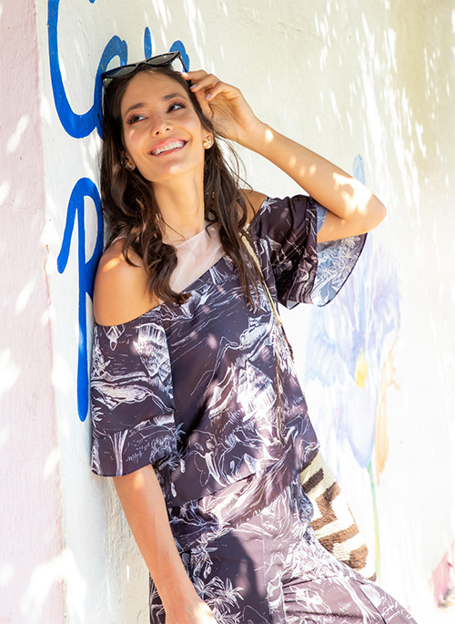 The Tere shirt is one of our best-sellers and that's why we brought it back this season. Look for your missing color and add it to your collection! It's a versatile shirt with a skin-toned mesh part which makes it look like it's an off-shoulder piece. It comes with a double satin cut and short sleeves.Wear it for anything and you'll feel amazing.