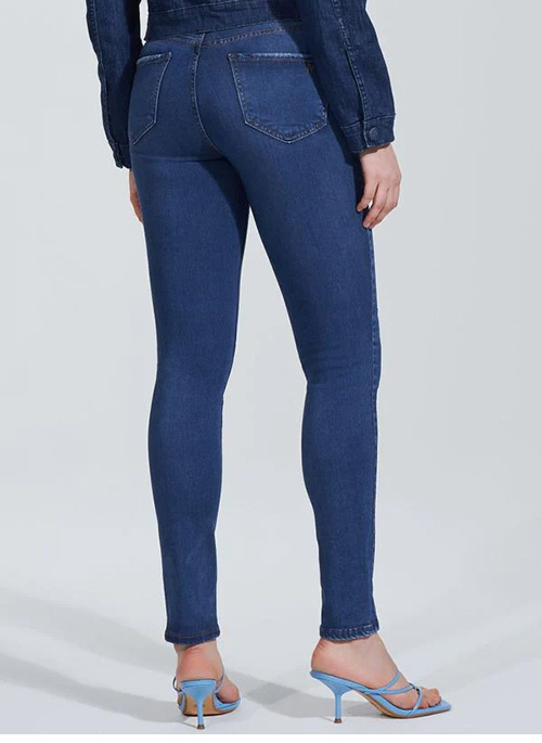 It is an icon from our "Shine Denim" collection, ideal for fashionable looks. It features premium Lurex and a premium yarn finish that wraps the fabric weft giving the jeans a unique finish with a soft touch to the piece without making it rough. The piece in this styling has 5 Pockets, with a fixed waist, a waistband, and a front closure with zipper and lined buttons.