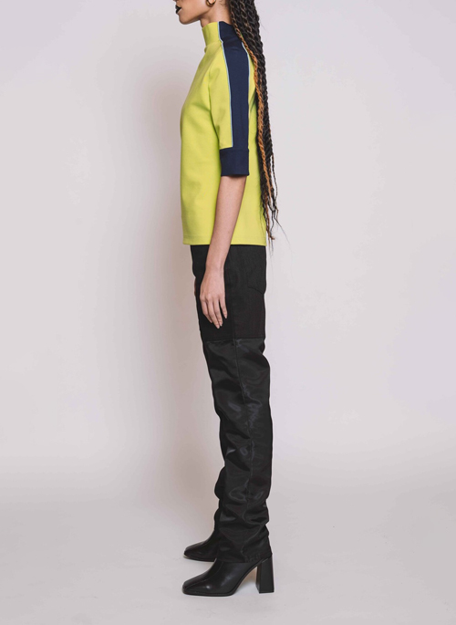 Curate your selection of statement-making pieces with this stretch-knit mock neck top, featuring a close fit for a slimming silhouette.