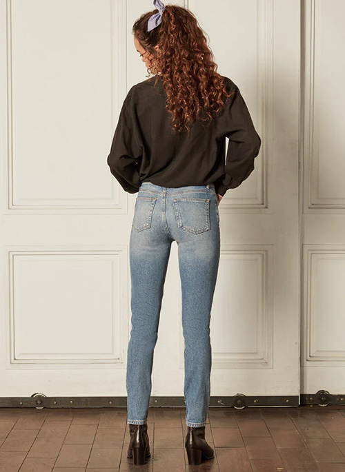 This sustainable jean includes OCS-certified organic cotton and Tencel™ Lyocell, a natural raw material from responsibly produced eucalyptus trees, reducing carbon footprint and water usage to increase circularity.