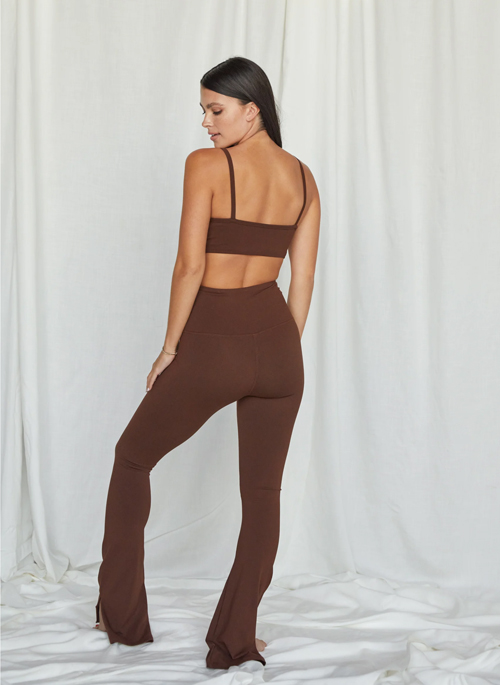Meet the Finn! This high rise flair pant features adjustable ruching drawstrings at the waistband and side slits.