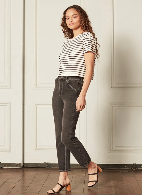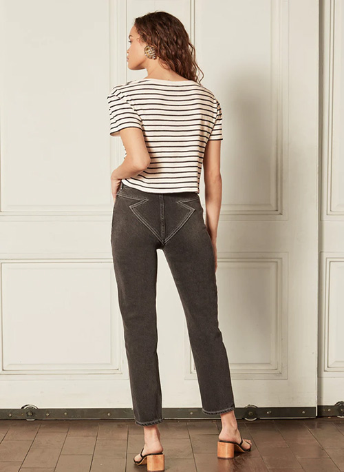 Channel your inner rock star. The Rayo is our coolest jeans yet! Elevate your wardrobe with this new slim fit denim style featuring a unique yoke that will have you looking charming and edgy. These upcycled jeans include organic cotton that is OCS certified, and Tencel™ Lyocell, a natural raw material from eucalyptus trees that is responsibly produced to minimize environmental impact, reducing its carbon footprint and water usage.