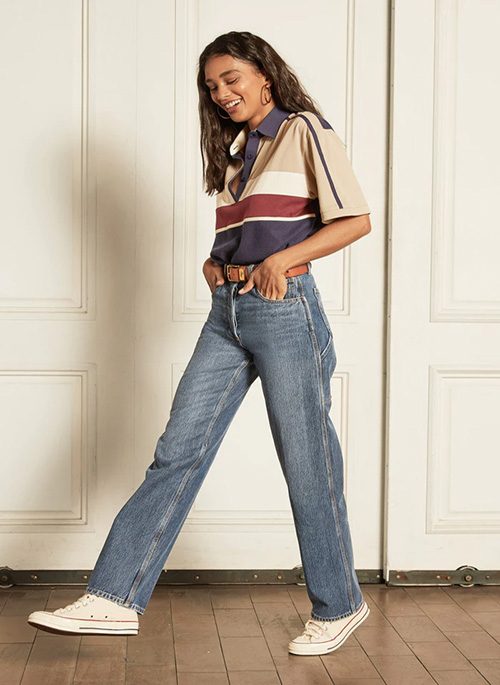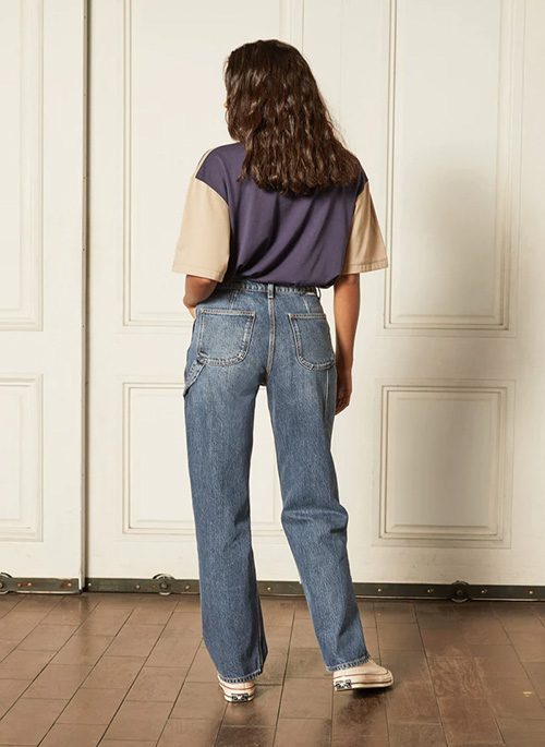 This upcycled jean includes OCS-certified Organic Cotton and Tencel™ Lyocell, a natural raw material from eucalyptus trees that is responsibly produced to minimize environmental impact, reducing its carbon footprint and water usage.