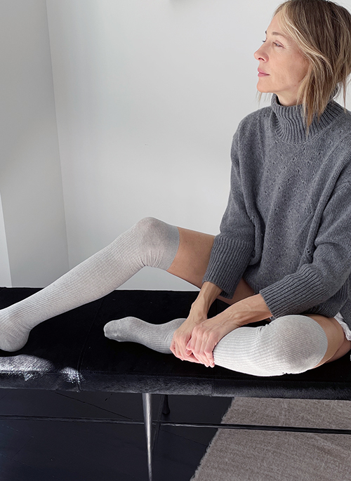 Cut for a relaxed over-the-knee silhouette, these socks embody Elizabeth Reid's sporty yet feminine brand style. They’re crafted in Europe from the finest high-quality cotton with fine-gauge heels and toes for comfort and ease. Spotlight them with sneakers and loafers or layer them under knee-high boots for a cozy mood.