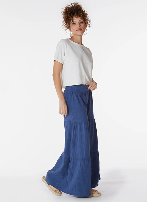 Your new favorite wide-leg pant is here! Featuring a smocked waist and loose fit through the tiered leg. Pair with our matching Beach Gauze tops, with your bathing suit, or your favorite tee.