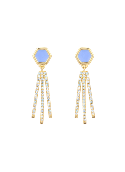 - Materials: Blue Topaz, Sterling Silver & Gold Ecoat Stud,