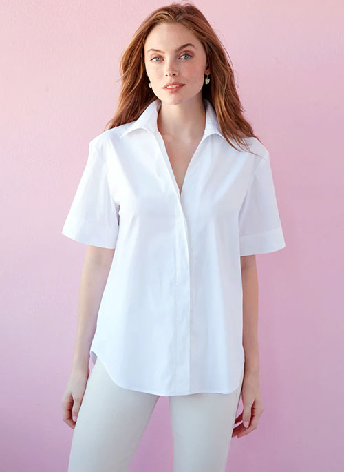 Our Tommi shirt sports a cute, boxy shape and a rolled short sleeve.