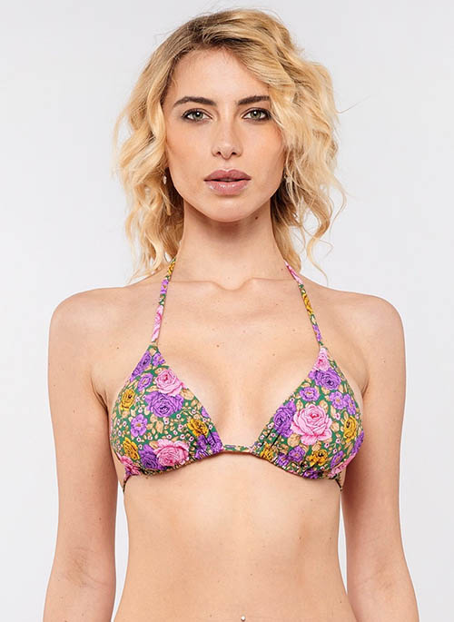 The printed triangle or solid color bikini is an evergreen garment perfect for summer. Triangle top with removable cups that adapt perfectly to your curves and with thin adjustable drawstrings that offer the possibility to choose the most suitable fit. L wide variety of prints from the most romantic, to the most lively, from the wildest to the most neutral, will make your summer look unique.