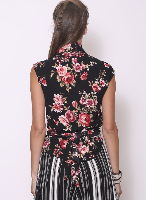 Sleeveless wrap top. Reclaimed 100% polyester. Made in the USA. Hand wash cold, hang dry or dry flat. Do not iron. We highly recommend using a washing bag such as Guppy Friend to keep the microfibers of synthetic fabrics from polluting our planet's water systems.