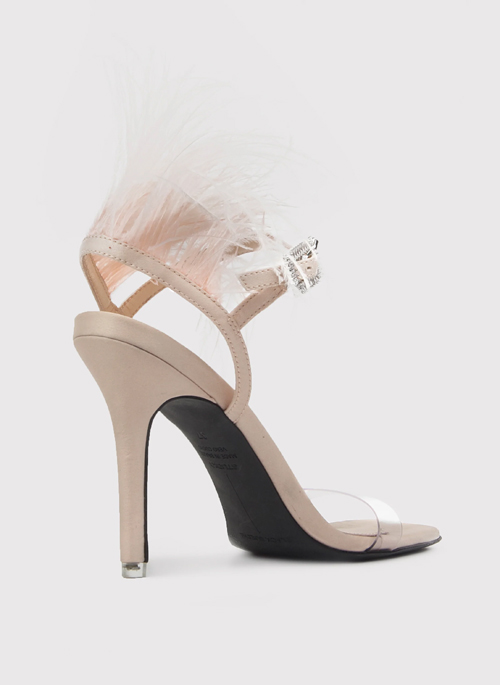 Our show stopper heel TRINITY brings the FUN to any evening. The leather combined with the ostrich feather and crystal buckle adds class and sexy to your outfit.