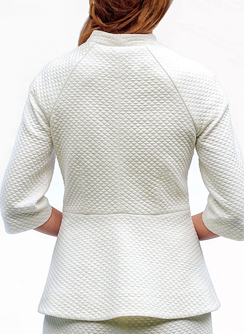 White jacket with one-of-a-kind embroidery on the pockets. Truly smart and timeless style to wear year around. Made of unique, soft and warm organic cotton fabric. Design: KiRiVOO by Teele Koel.