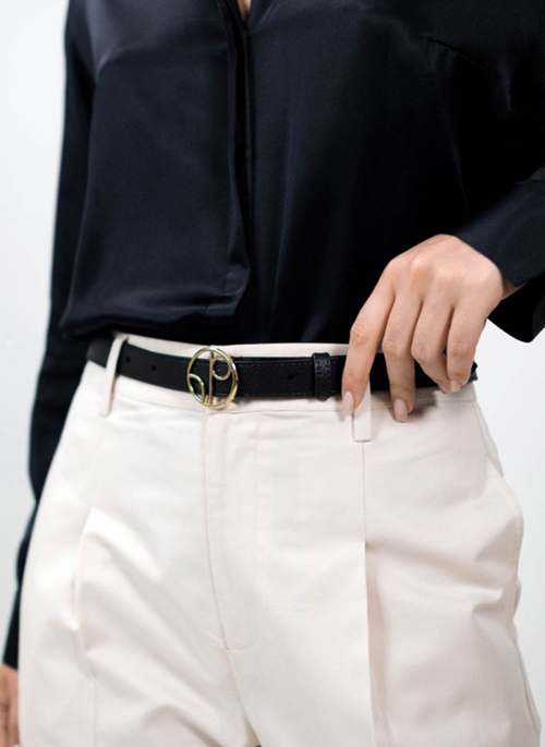 The new and improved rendition of the previous Antwerp Thin Belt. Boasting the same signature logo from recycled brass as the statement piece and buckle fastening, but now designed and made with the luxurious VEGEA and Dinamica® ecological suede materials. Accessorise your festive look with it and make a statement that turns heads.
