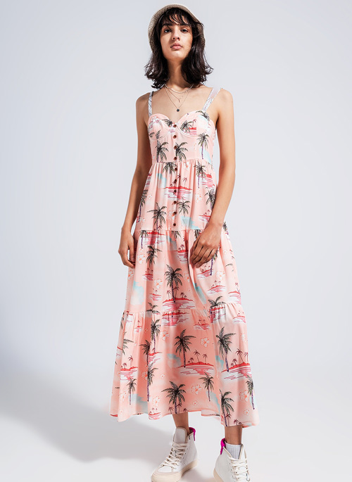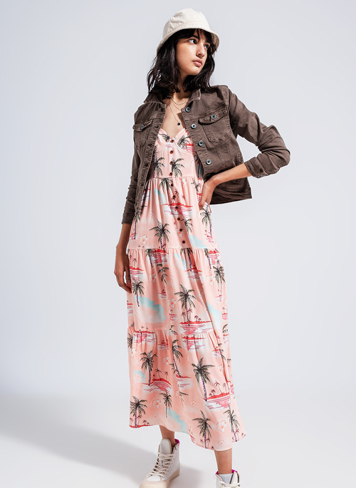 NEW CAMI MAXI BEACH DRESS IN NATURAL TROPICAL PRINT