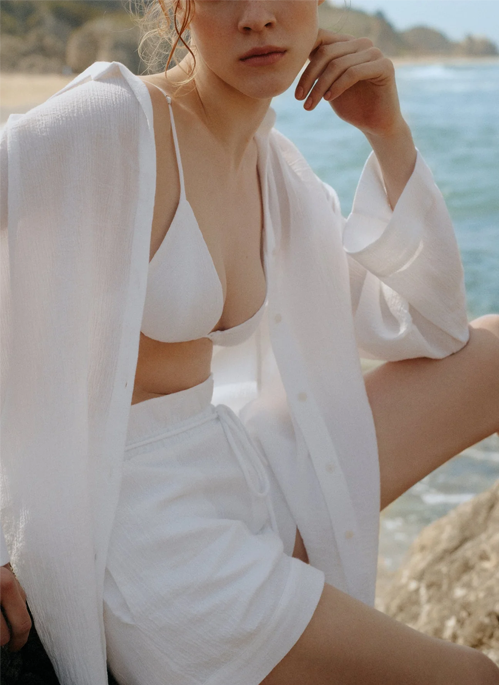 The ultimate bralette for any kind of denim jean or layer it with our Tropical Twist Top White. Featuring adjustable shoulder straps, detailed with stitches to add elegance to your style. Minimalist and easy wearing, the Tropical Twist Bralette in our timeless design is perfect for the beachy fresh summer look.