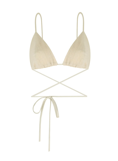 The ultimate bralette for any kind of denim jean or layer it with our Tropical Twist Top Oatmeal. Featuring adjustable shoulder straps, detailed with stitches to add elegance to your style. Minimalist and easy wearing, the Tropical Twist Bralette in our timeless design is perfect for the beachy fresh summer look.