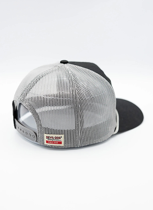 Go retro with this classic grandpa trucker hat. Features a durable 2-tone grey rope across the visor, back mesh for ventilation and Devil-Dog Mfg. woven patch.
