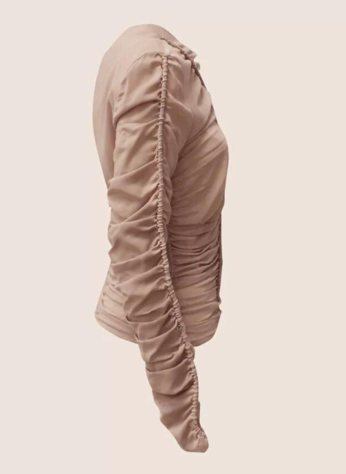 Fitted powder-colored top with elastic studded with piercing jewels. Characterized by the back closure with zip and button.