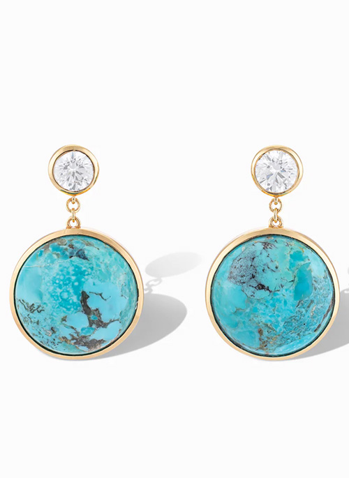 Inspired by melting icicles, our Mini Dropping Circles earrings in mohave turquoise are the little sister to our best selling Dropping Circles statement earrings. Add them to any outfit, day or night for colorful fun and a little sparkle!