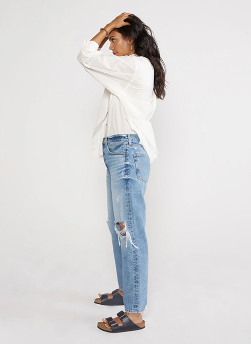 A straight leg jean with a high rise and vintage construction, Tyler is fitted through the hip and straight through the leg. Careful fading and thoughtful destruction add to the authenticity of the style.