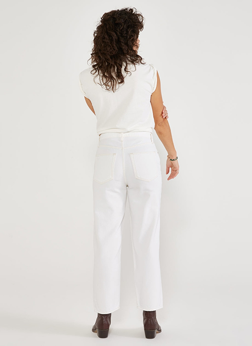 A straight leg jean with a high rise and vintage construction, Tyler is fitted through the hip and straight through the leg. A soft, bleach-free white wash finishes the look.