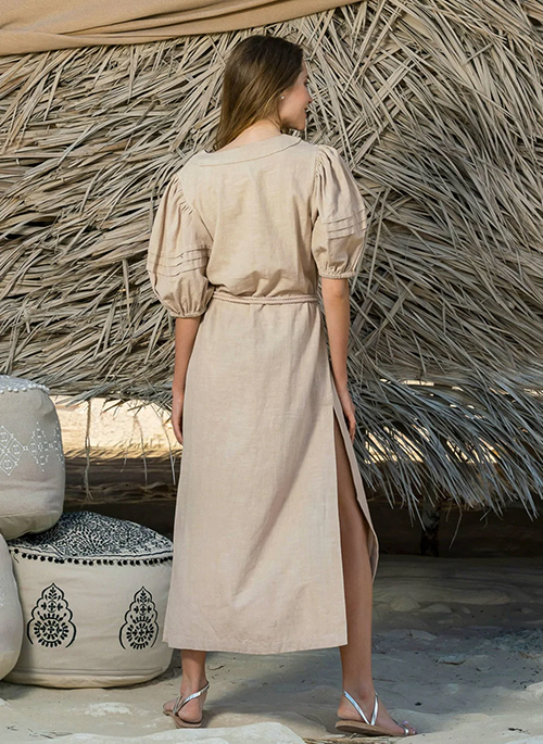 This kaftan dress is crafted from a textured cotton, thick enough to be worn as a dress, thin enough to feel cool in hot climates. An iconic dress taking you through several seasons!