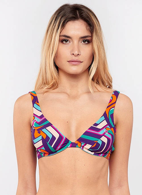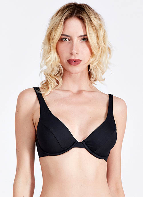 The underwired top is designed to ensure greater stability and support for the decollete. Refined and comfortable, it is the ideal choice for those who want extra support without giving up on enhancing the femininity of the silhouette. Made in many lively prints or in elegant solid colors, it is perfect to coordinate with an opaque adjustable brief.