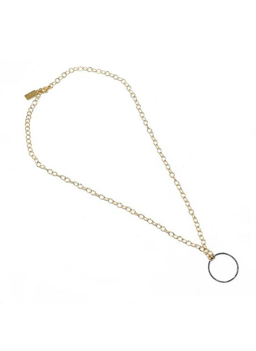 14k gold filled dainty forever chain with a 14k gold filled clasp and our oxidized sterling unity circle pendant.