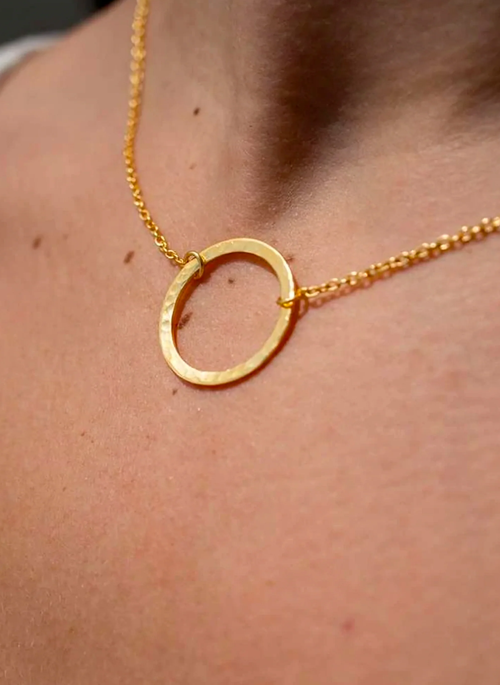 United by a textured circle pendant, the Unity chain is a reminder to fight human trafficking together and carry the hope of women forward. The timeless chain is a perfect companion for everyday life.