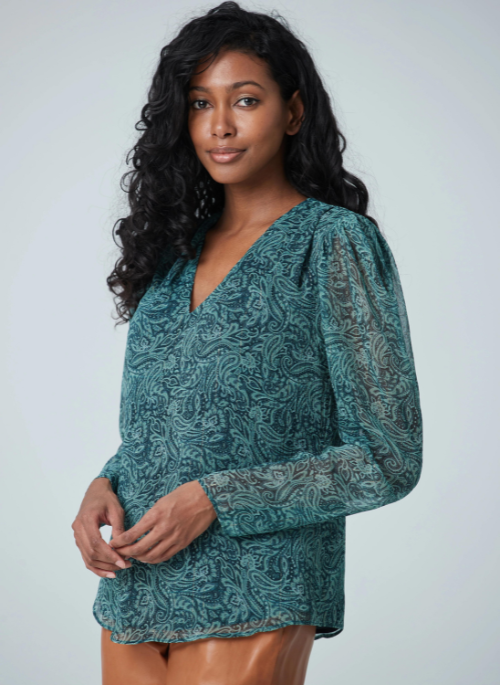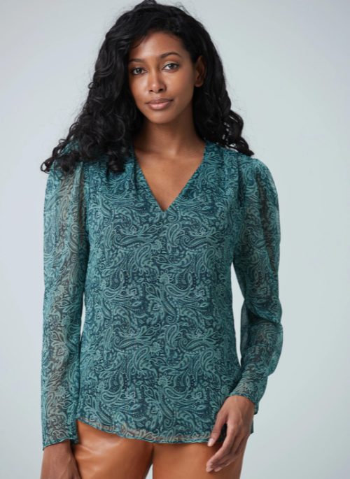 Textured Soft Crepe Chiffon. Small shoulder details with a beautiful cross at the neckline of this top. A nice top to pair with jeans for a casual yet chic outfit. Very easy to maintain and super light fabric.