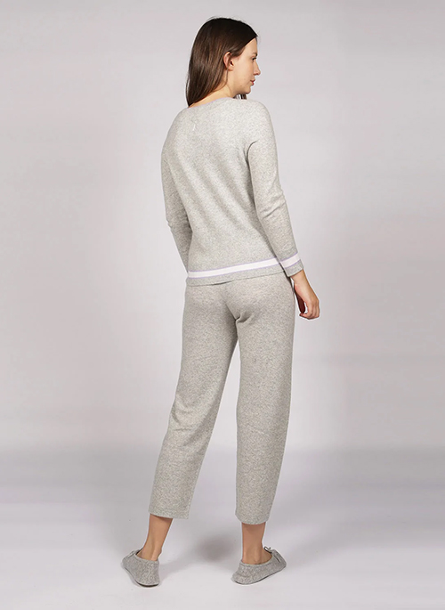 Lightweight vee neck with contrast colour tipping at neck trim and tonal stripe details at hem & cuff. Solid star to reflect the tonal shades in the sweater.