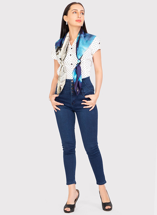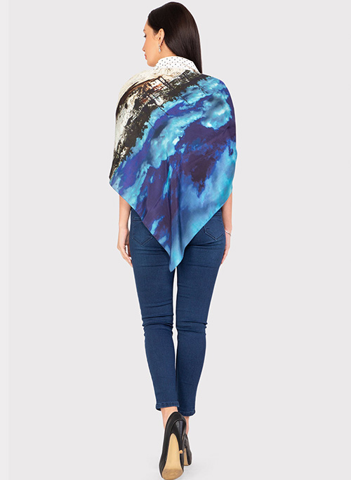 A classic silk square scarf with a mammoth hot springs print inspired by Maneesha's travels.
