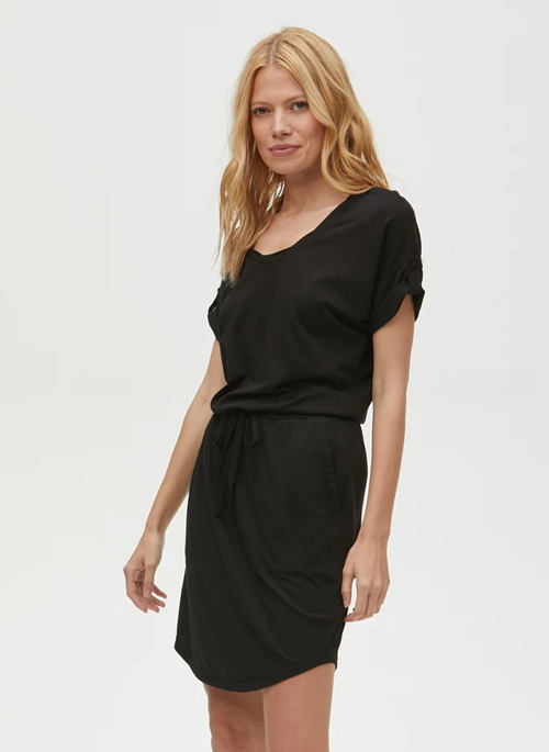 We call her Valerie, but you can call her your must-have warm-weather tee-shirt dress, featuring an easy fit with a scoop neck and an adjustable drawstring waist.