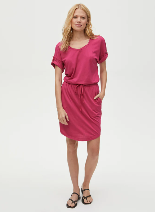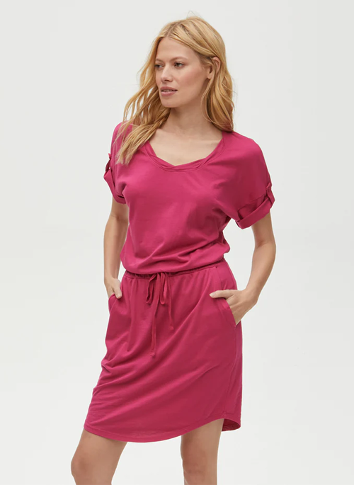 We call her Valerie, but you can call her your must-have warm-weather tee-shirt dress, featuring an easy fit with a scoop neck and an adjustable drawstring waist.