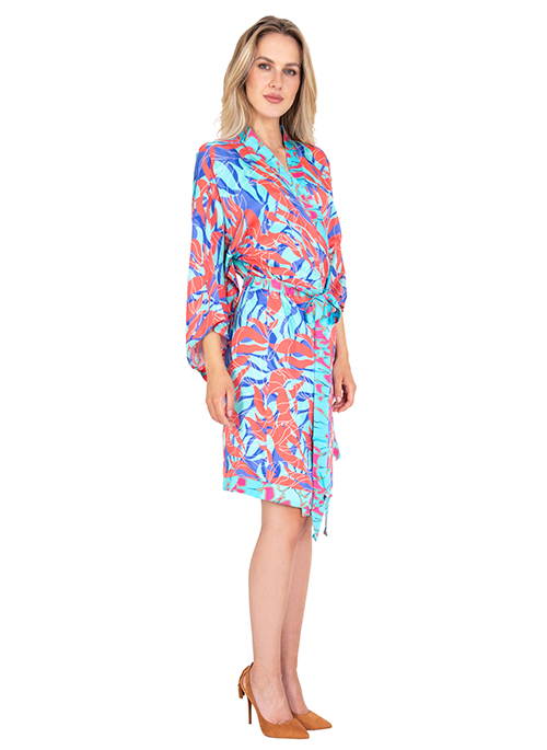 The kimono dress has its own unique charm. It is light, comfortable and airy, perfect for summer heat. Made of natural viscose with a slight satin sheen. Match it with a summer hat and enjoy your vacation in the best style.