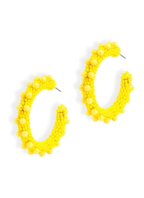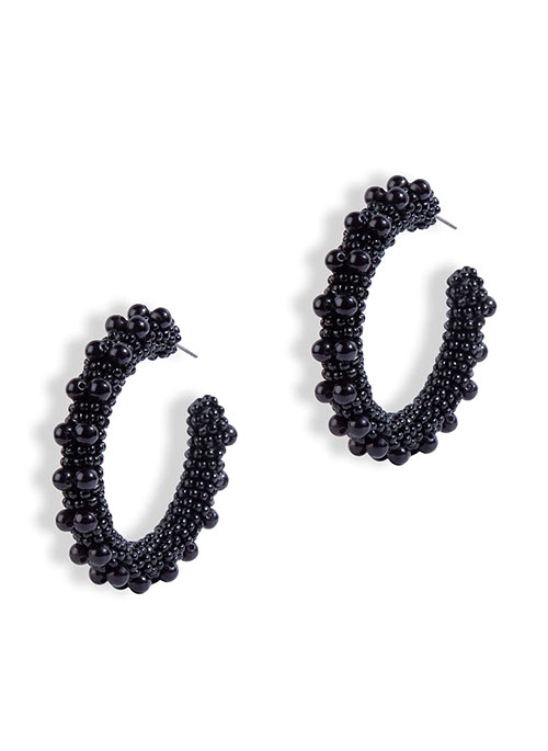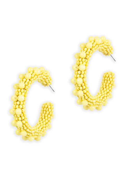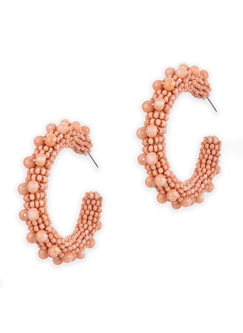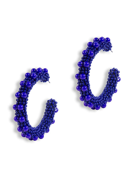 Add polish to any look with our Vidya Hoop Earrings. Details: Cotton Glass beads Brass Mild steel post Vegan leather backing Nickel free Approximately 2" Round