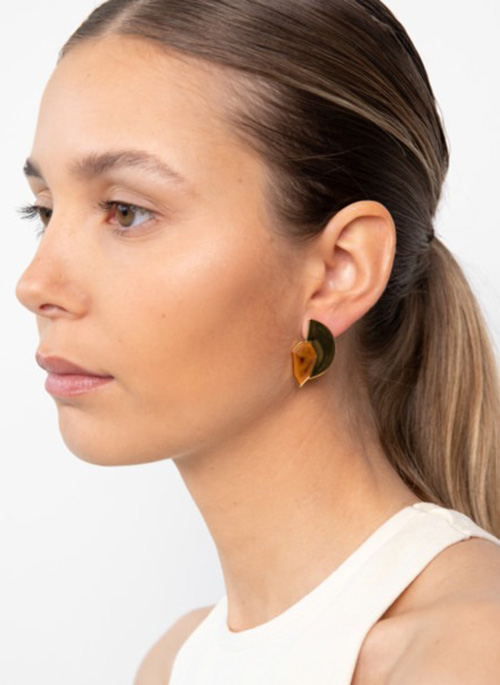 Stylish, timeless and feminine – the vintage shortie stone earrings uplift your every look! With its 24k gold plated half moon design, finished with a geometric colored stone, these studs are true treasures of Souvenirs De Pomme. Be it in coral, beige, caramel or soft rust – the vintage shortie earrings won’t disappoint!