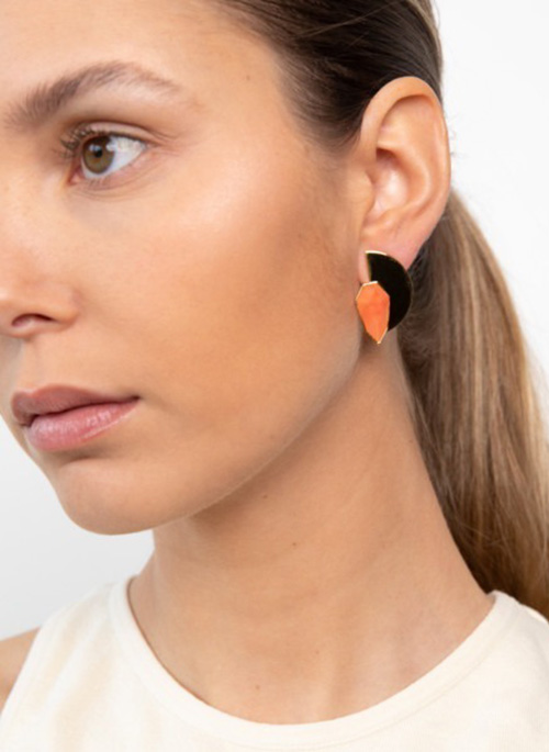 Stylish, timeless and feminine – the vintage shortie stone earrings uplift your every look! With its 24k gold plated half moon design, finished with a geometric colored stone, these studs are true treasures of Souvenirs De Pomme. Be it in coral, beige, caramel or soft rust – the vintage shortie earrings won’t disappoint!