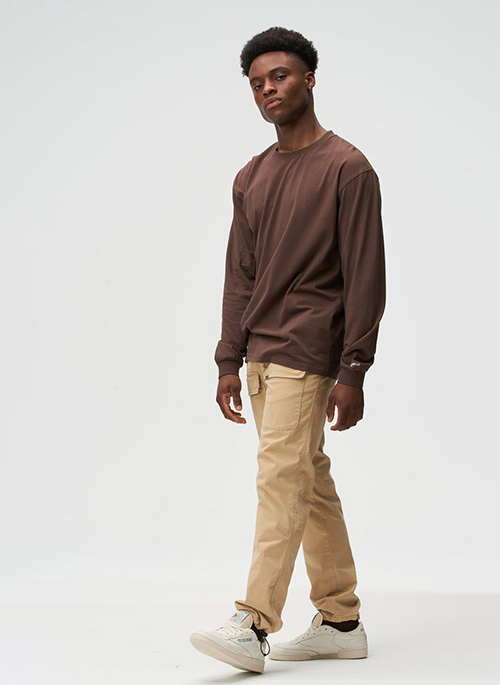 The Organic Vintage Long Sleeve features a straight cut, drop shoulders, rib cuff & hem and tonal logo embroidery.