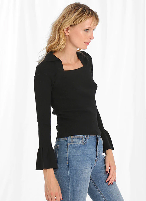 Forever in the 70's, our fit and flare sleeve is the ultimate form of flattery. Creating a slim shape, our super-soft sweater with the square neck and fitted body is perfect for day to night.