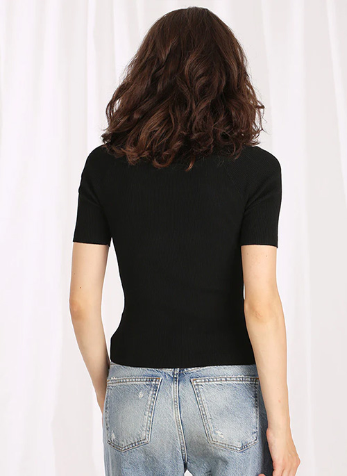 Soft served with sexy in short sleeved, pinned neck, modern polo. Pair back to high waisted trousers or denim.